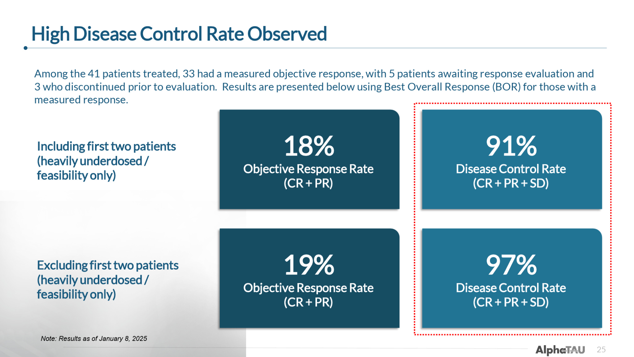 We discuss these results in further detail below, including a comparison to SoC and leading clinical programs, but suffice it to say that these early data are very encouraging.
