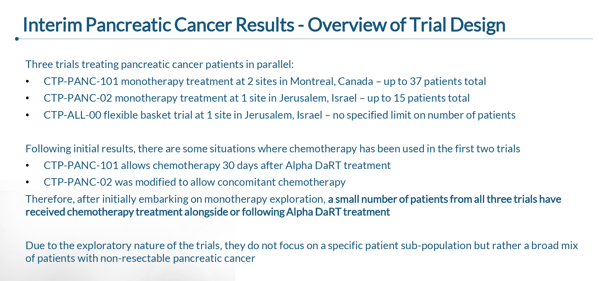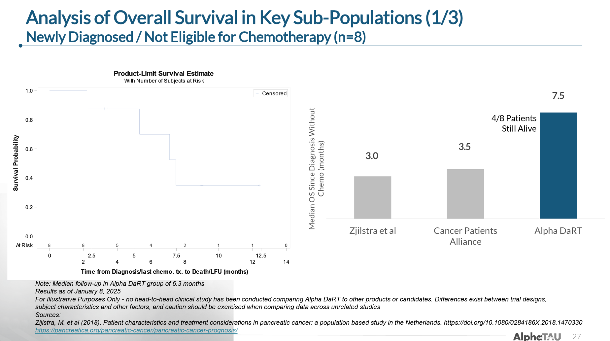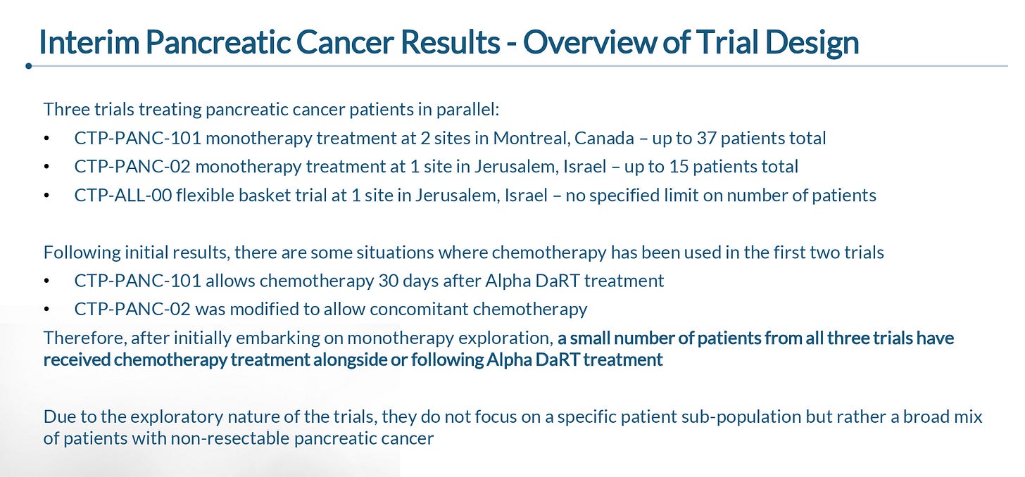 In patients with newly diagnosed pancreatic cancer that were not eligible for (or refusing) chemotherapy, Alpha DaRT delivered 7.5 months median overall survival (mOS) versus 3-3.5 months for standard of care: