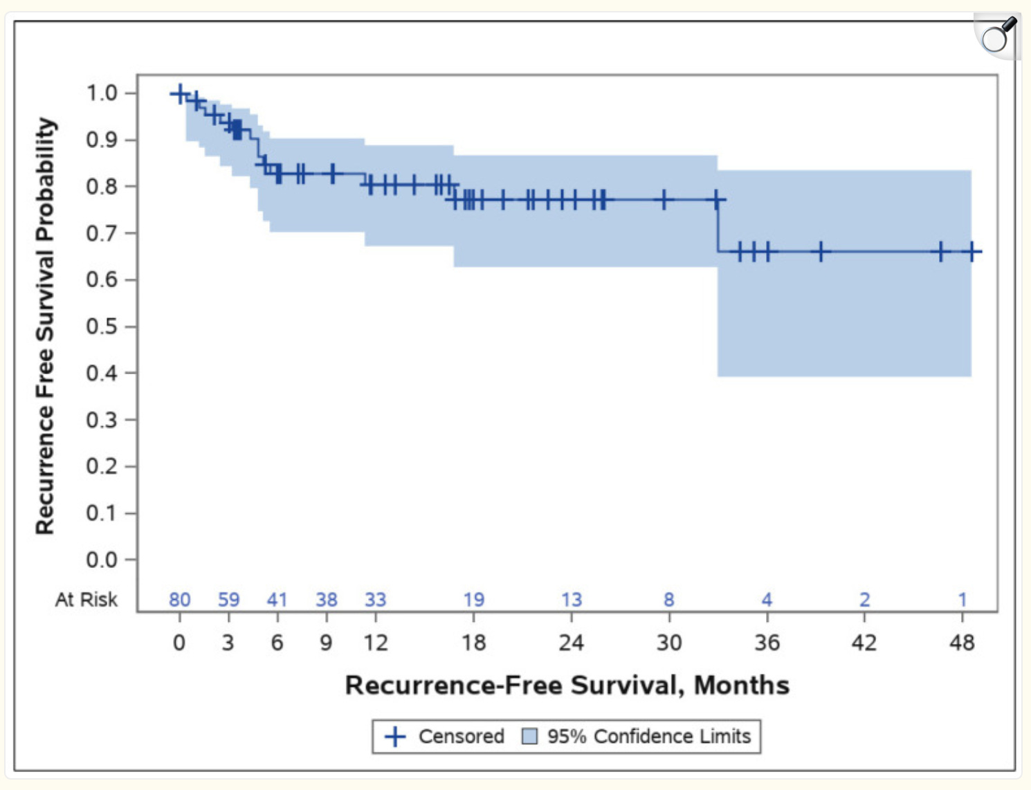 The two-year actuarial local recurrence-free survival (essentially two-year PFS) was 77% (shown below), and if you look at the recurrence/survival plot below, you can also see that the 4-year PFS is around 65%. These results would have been even better if you were to exclude the 28-patient pilot trial, which had had lower efficacy and durability than subsequent trials as the company initially prioritized safety and optimized the Alpha DaRT device/procedure.