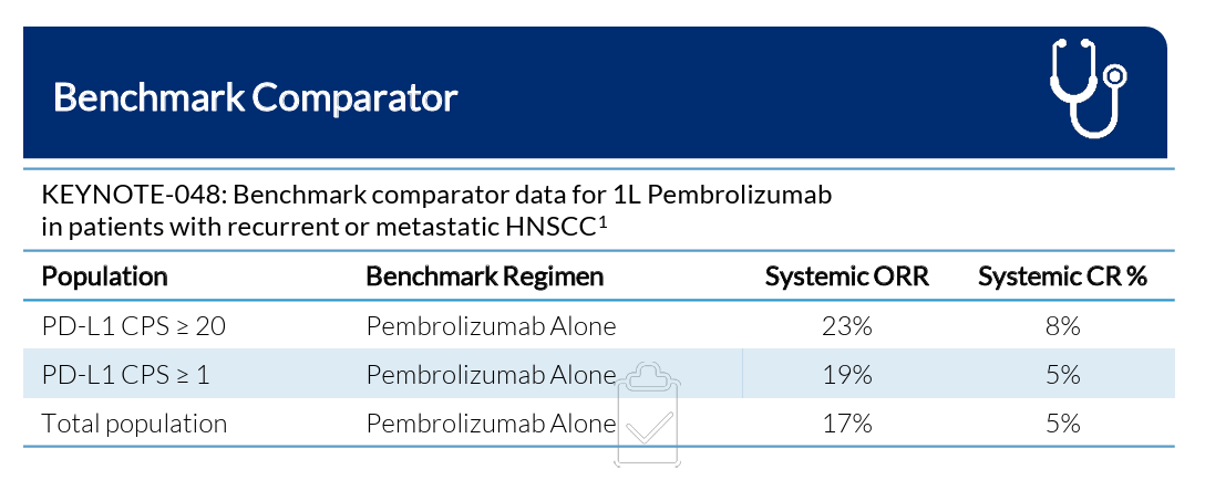100% objective response rate (ORR) and 50% CR rate in HNSCC in combo with pembro