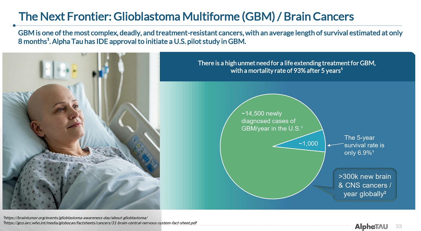 In addition to these milestones, we also reiterate that we think Alpha Tau’s general expansion into US-based trials of high-mortality cancers like pancreatic and GBM will increase the company’s profile among both investors and the scientific community.