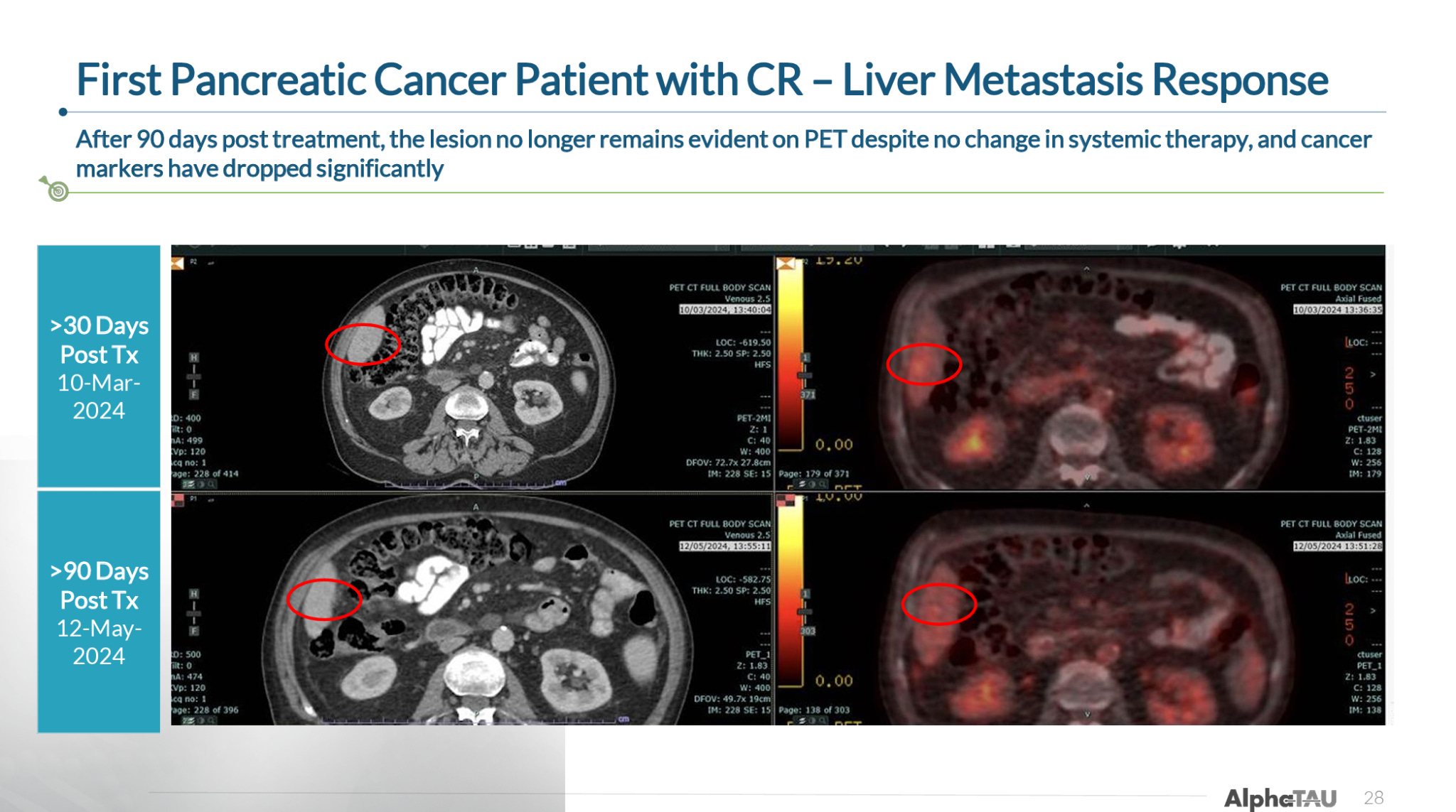 The company also provided a case study from its first CR in pancreatic cancer, in which a patient had both a complete response in the primary pancreatic tumor as well as resolution of liver metastasis.