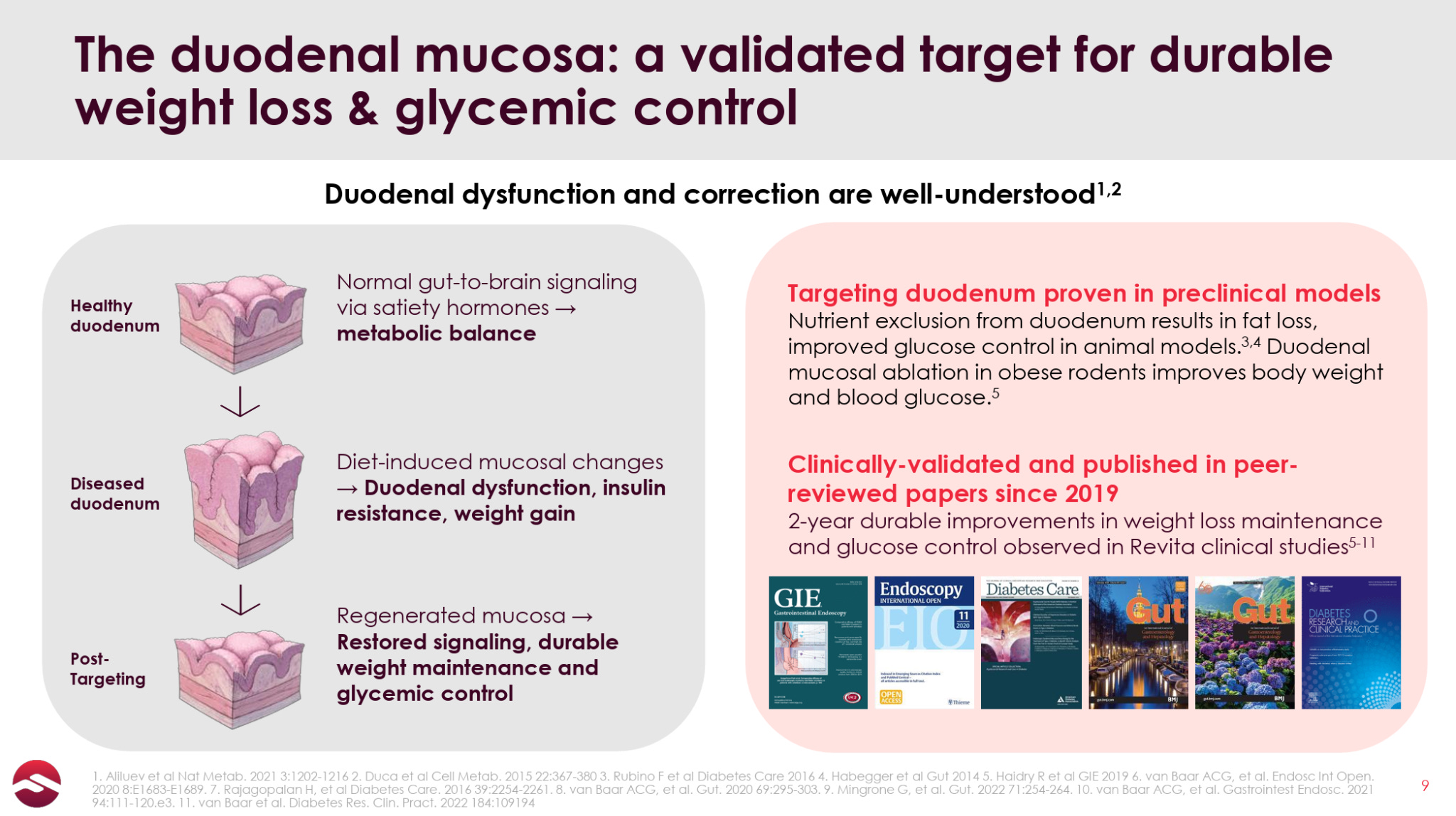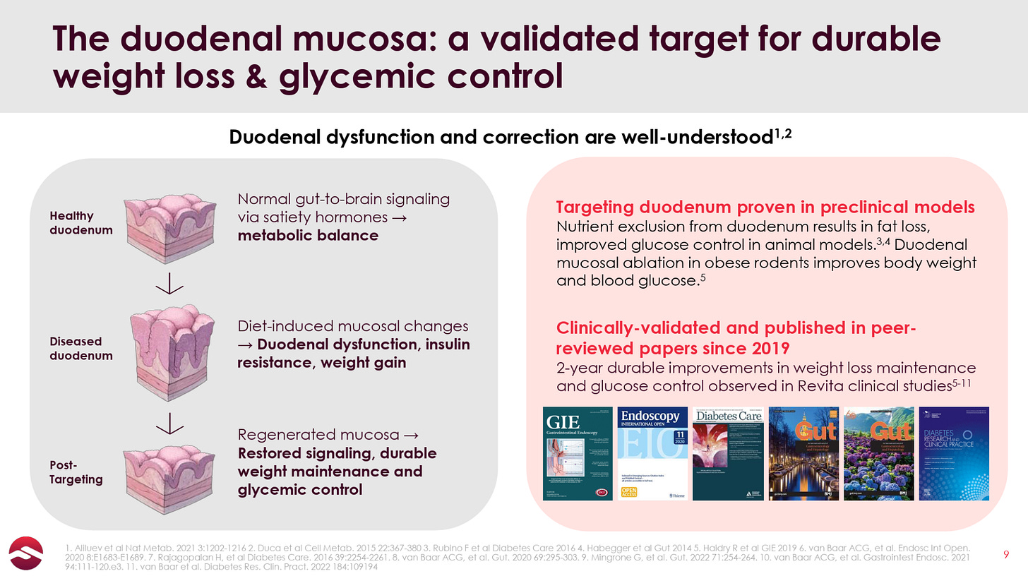 The device and respective procedure, named Revita, involves the hydrothermal ablation of a section of duodenal lining, a tissue which has been found to undergo changes in response to high-fat, high-sugar diets that disrupt the body’s metabolism such that it regulates to and defends a higher weight. The idea is that the post-ablation regrowth of this lining causes a resetting of the patient’s metabolic set point, potentially allowing patients to maintain their GLP-1 weight loss without staying on a drug indefinitely.