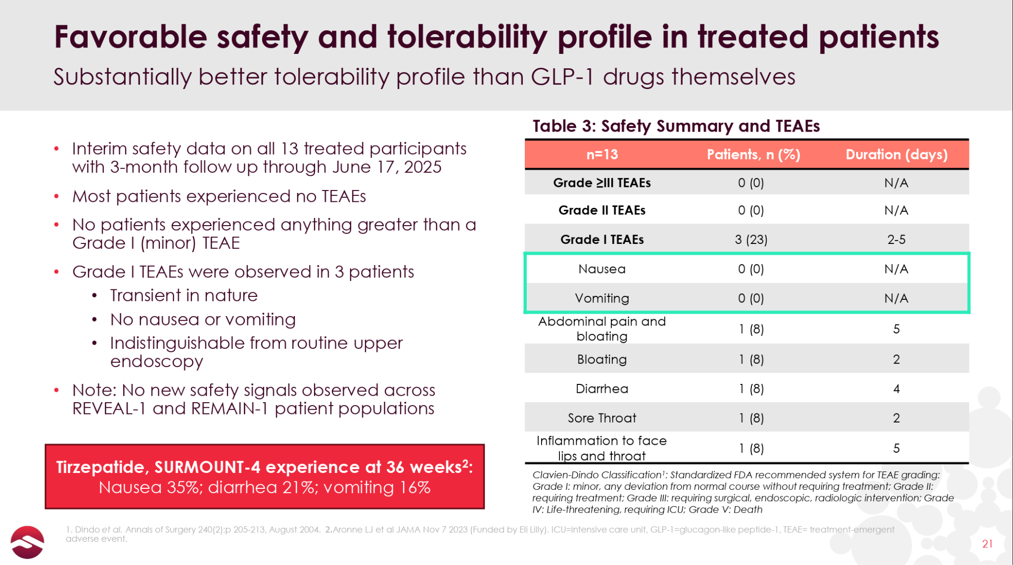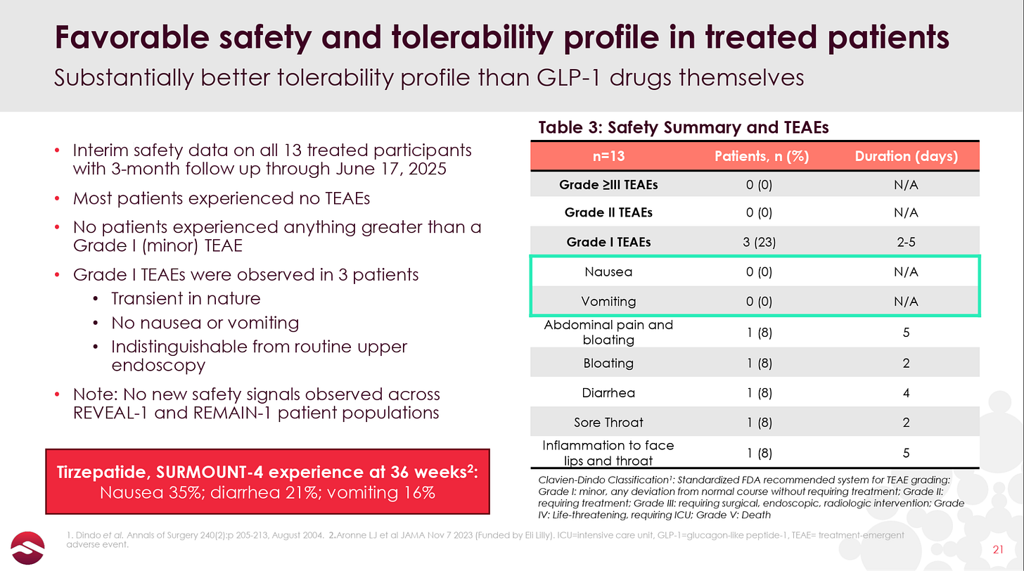 The ability to offer patients a one-time, pain-free, nausea-free solution to getting off of their GLP-1 would likely be a key selling point for potential patients.