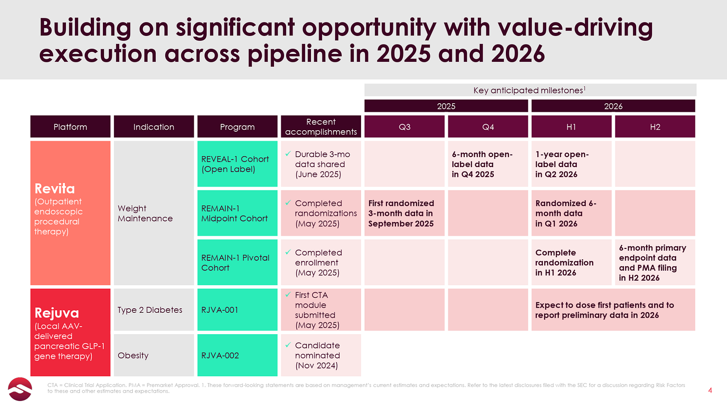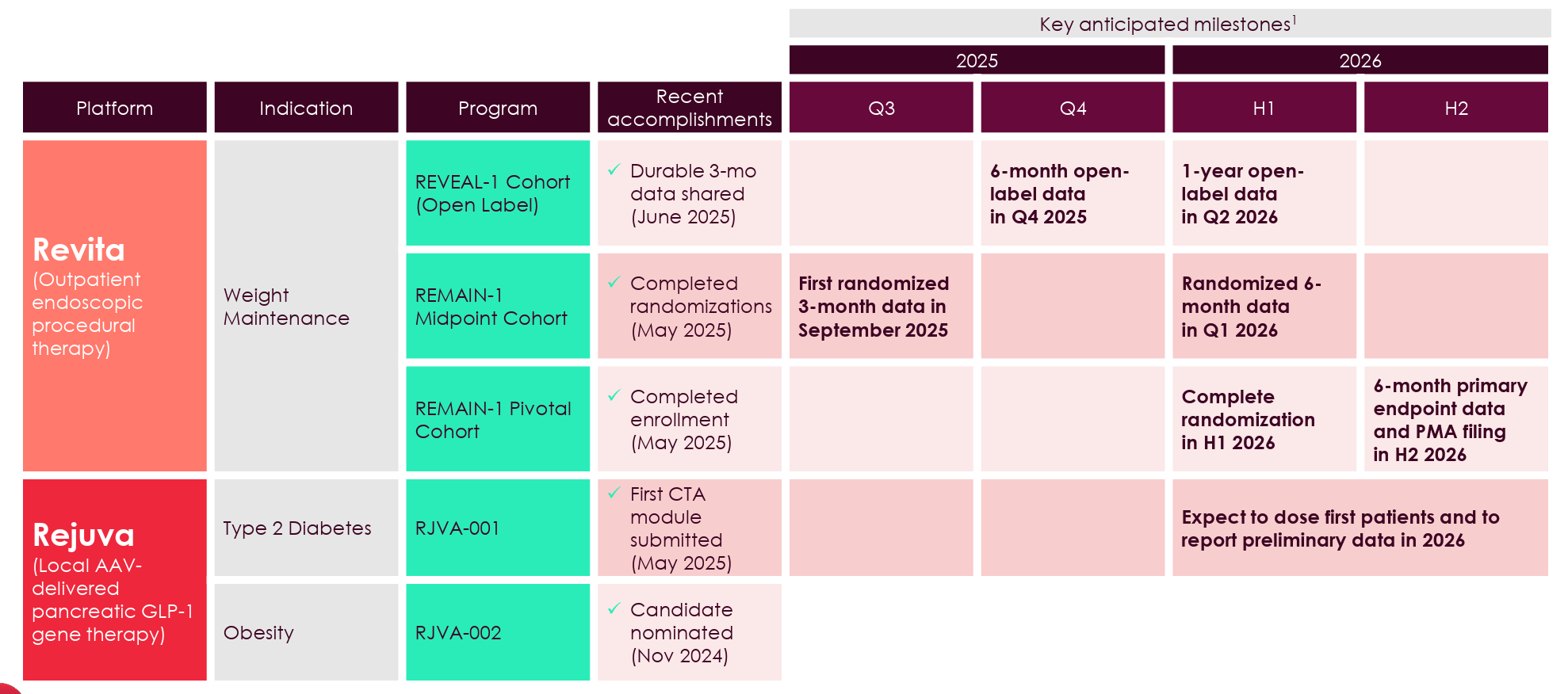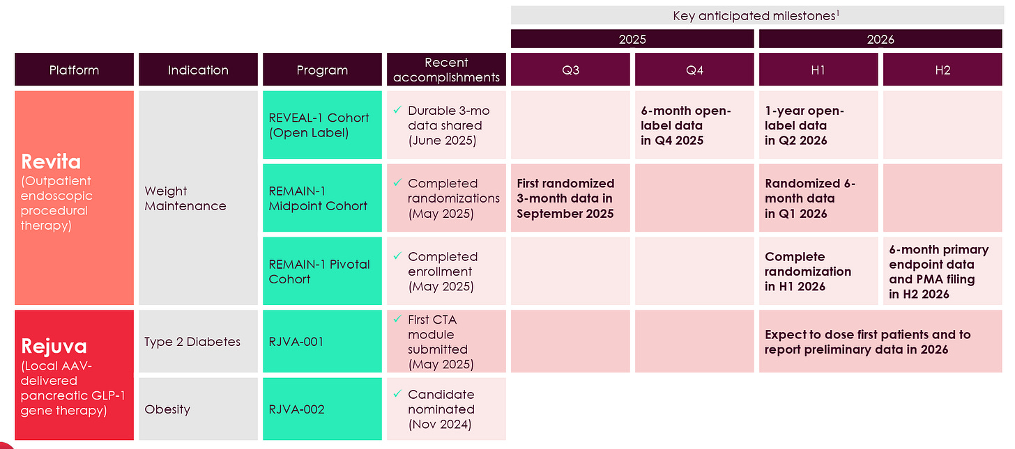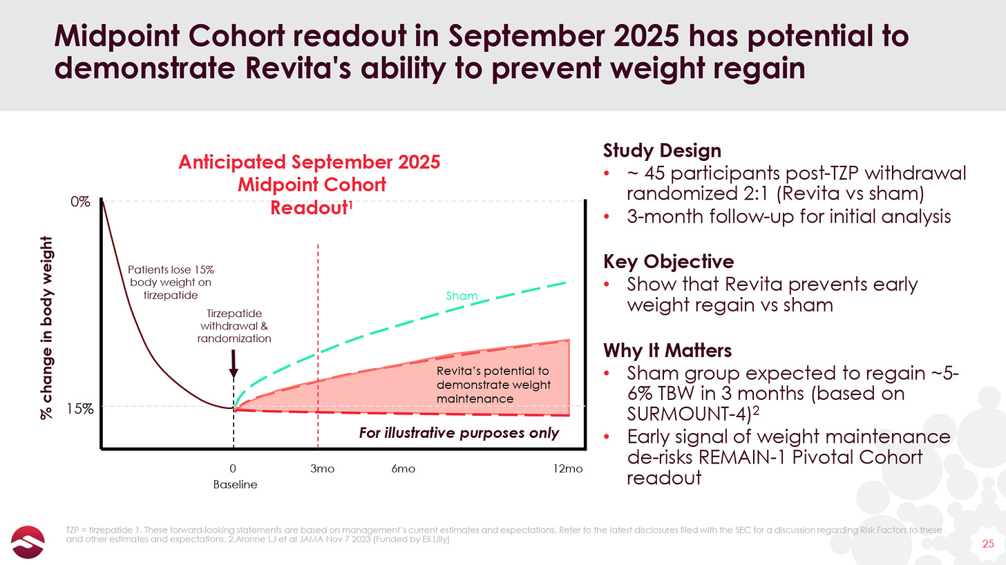Over the next 12 months, Revita will be pretty comprehensively characterized as a treatment for GLP-1 discontinuation patients, culminating in a relatively near-term opportunity to submit a PMA in the 2H26. The upcoming 12-week results serve as a proof-of-concept, setting both the expectations and the level of investor interest/excitement for these upcoming readouts.